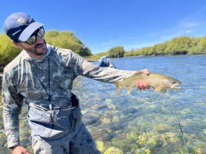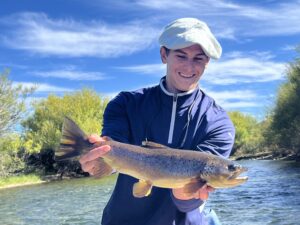 The trout fishing is by float boat so it is accessible to all ages and whilst the fish are definitely not stupid, they are more than willing to come to a well presented fly, be it dry or a nymph.